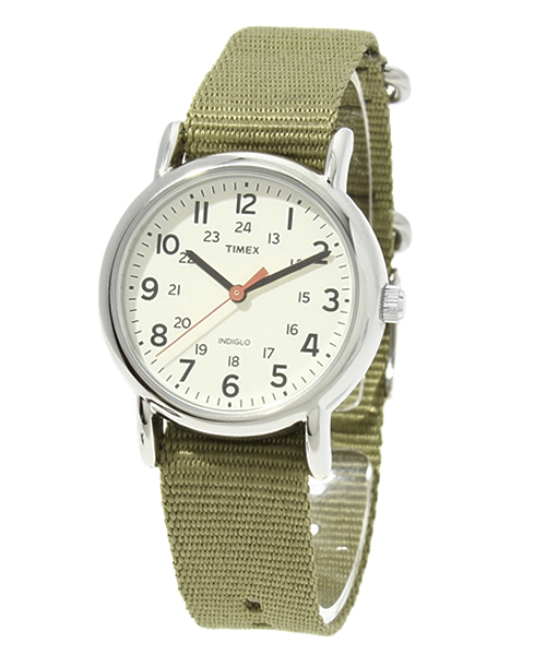 女性の腕にピッタリなサイジング、ポップなカラーリングのベルトが特徴的。タイメックスのミリタリー系譜に連なる伝統的デザインとリーズナブルな価格、そして高いファッション性を備えた「ウィークエンダーセントラルパーク」は、まさにタイメックスの想いを形にした時計です。タイメックスの代名詞とも言える、文字盤全面発光機能「インディグロナイトライト」も、もちろん搭載しています。 ●クウォーツ ●日常生活防水
