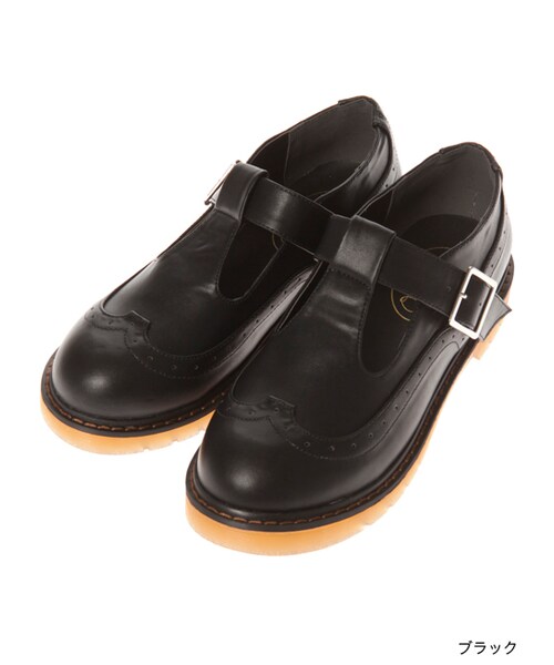 ウィングチップのデザインがマニッシュな印象のシューズ。メンズライクながらもTストラップで可愛らしい雰囲気もあります。しっかりとした作りで足元を支えてくれるので歩きやすさも◎。コーデュロイパンツや膝丈スカートなどあわせるアイテムを選びません。