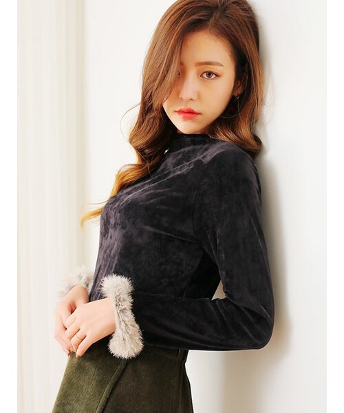 袖のウサギファー使いがルックを 品高く見せてくれるTシャツです。