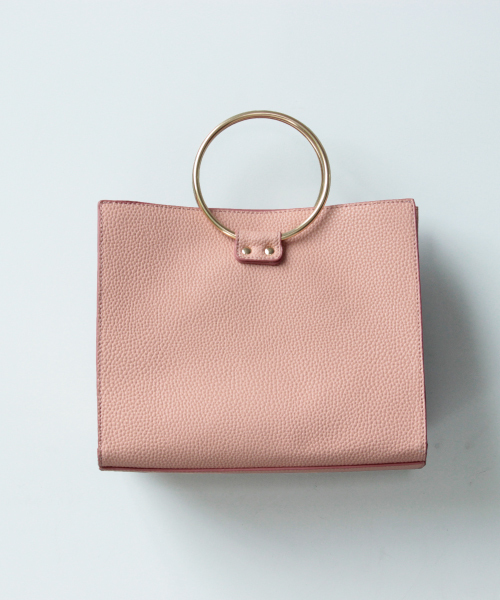 《新色のピンクが仲間入りしました♪》 リングハンドルバッグがまさに旬♪必要なものはしっかり入るのに、サイズ感はコンパクトで軽いお作りなのでデイリー使いに最適です。 一見シンプルデザインですが、中のポケットが配色になっているので見えないところにもポイントが◎ ※ブラックとブラック系その他は、バッグ本体は同色となります。 内ポケットの素材ディティールが異なりますので、詳細画像よりご確認くださいませ。 ※ブラックの内ポケットは、型押し素材を使用しています。 インパクトの強い型押し素材も内側のポケットなので、ハードなイメージに偏らずコーディネートに取り入れていただけるのでオススメです!