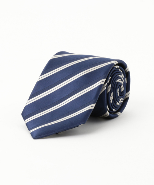 【ESTNATION】 上質なシルクを使用したESTNATIONオリジナルのネクタイ。 爽やかな色合いのレジメンタルストライプ柄なので、幅広いシーンで、お使いいただける1本です。ギフトとしてもおすすめの商品です。