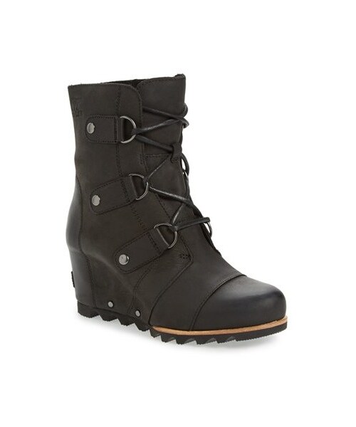 An easy wedge modernizes a slopes-inspired boot designed with durable D-rings and a sturdy, razored-lug sole. Color(s): black, tobacco. Brand: Sorel. Style Name:Sorel 'Joan Of Arctic' Waterproof Wedge Boot (Women) (Regular Retail Price: $249.95). Style Number: 1065545_3. Available in stores.