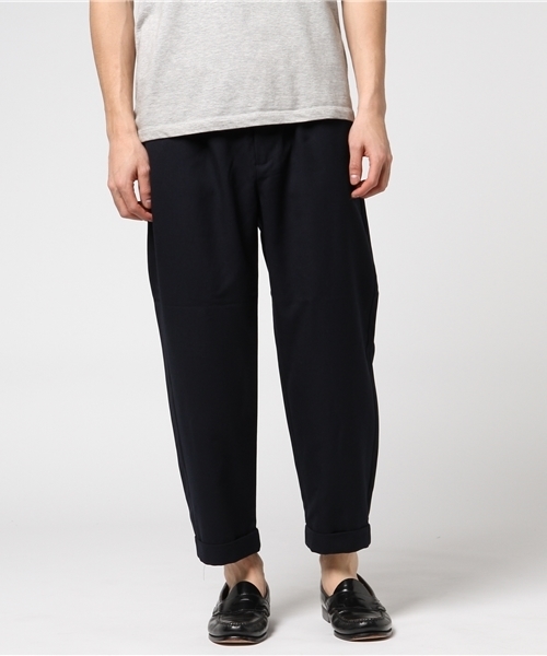 シンプルかつスタンダードに履きこなせるスラックスパンツ!!コーディネートに迷った時に活躍できるタイプ。スラックス地でシンプルに履きこなせるので、いろいろな場面で重宝できるアイテムです。