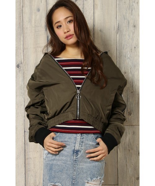 トレンドアウターでもあるMA-1が、後ろジップ付きのオフショル仕立てで登場!ジップを閉めてシンプルなMA-1に、ジップを開けてオフショルダーにと着こなしに合わせてアレンジができます☆定番のミリタリーアウターに飽きてしまった方にもオススメで、春先や秋口などにも使えるライトアウターとして持っておくと便利ですよ!