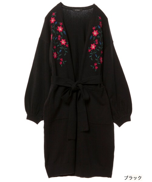 ダブクロらしい花柄の刺繍が施されたロングカーディガン。伸縮性の良い生地で肌触りも良く、身頃と袖もゆったりとした作りなので、コーデにほど良いリラックス感を演出してくれます。ウエストリボンがついているので前や後ろで結んで雰囲気を変えるのも◎。いつものコーデに羽織るだけで今年らしくなるアイテムです。コートを着たときに裾から見えにくい丈感もオススメポイントです。冬はコートの下に、春先は羽織として長くお使いいただけます。