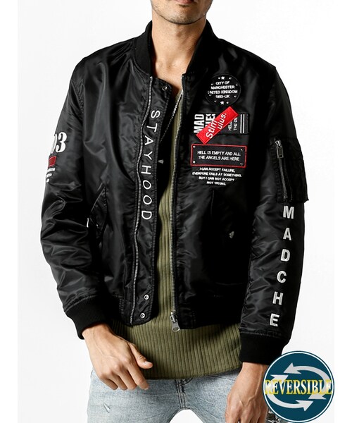表面は刺繍、スタッズ、ワッペンを随所に配した拘りのMA-1。ファスナーを開けたままで見える刺繍ロゴが施してあり、裏面はシンプルなMA-1となっていて、使いやすさは抜群。一着持っていれば幅広いコーディネートに使える事間違い無し。 カラーがブラックのみ、サイズはM〜XLの3の3サイズで展開中。 皮革部分 カウレザー