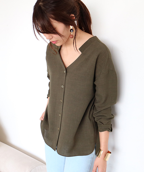 程よく力の抜けた大人のリラックススタイルを叶える前開きブラウス。知的で爽やかな印象を与える襟ぐりのカッティングがポイント。パンツstyleにフロントINなど、着回し力のあるアイテムです。程良くゆとりを持たせたラフなシルエットで風通しの良い平織り地を使用しています。