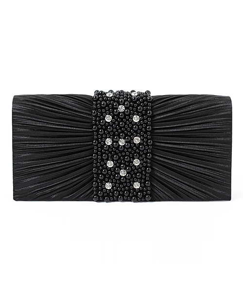 放射線状に広がった光沢のあるサテンがラグジュアリーな雰囲気を醸し出すクラッチバッグ。 動く度に豊かな表情で周りを魅了する艶めきと、センターに施したパール&ビジューの煌めきがエレガントで、結婚式の披露宴や二次会、パーティーや謝恩会などのフォーマルな席に相応しい上品な佇まいに。 内ポケット付きで散らばりがちな小物もしっかり整頓でき、お財布やスマホなどの必需品はもちろん、ご祝儀袋やデジカメまで余裕で入る大容量な収納力が女性に嬉しいポイントです。 付属のチェーンでショルダータイプにすればスタイリッシュなパンツドレスにもピッタリ。 程よい厚みを持った立体的なフォルムと大人もときめく輝きで、コーデに華やぎをプラスします。 ■留め具:マグネット式 ■収納力:ミニ財布・ハンカチ・スマホ・お化粧品など必需品キープ 内ポケット1つ付き ■付属品:チェーン1本 使用しております素材の性質上、若干の織ムラ及び摩擦や水濡れ、密着による多少の色落ちや色移行、また、屋外や照明における色の退行は避けることが出来ません。汗や雨による濡れた状態での、ご使用・保管には十分ご注意ください。商品にビーズやスパンコール、チェーンなどが付いている場合、お洋服等に引っ掛かり、傷つける場合がありますのでご注意ください。金具部分につきましては、製造上付く、小さな傷がある場合がございます。目立つものではありませんが気になる場合はお控えください。 【 画像の色・光沢について 】 お客様のモニタ環境により、画像の色が実物と異なって見える場合がございます。 ■こんなシーンにおすすめ 結婚式、二次会(2次会)、披露宴、フォーマル、お呼ばれ、謝恩会、パーティー、食事会、成人式、同窓会、女子会、デート、演奏会、発表会 2021/11/24より価格を改定しました。 商品タグに記載している価格が旧価格のものが混在しておりますが、現在はこちらの価格での販売となります。 ご了承下さいますよう、お願い申し上げます。