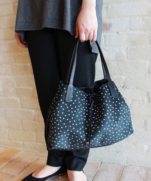 上質なレザーを使ったシンプルトート。 しっかりとした牛革は柔らかく、使うほどになじんでくる素材感。 肩掛けもしやすい華奢なストラップやコード、ほど良い大きさでデイリーユースにもぴったりです。 さらに付属のポーチが付いて使いやすさも考慮されています。 ちいさな星柄のリバーシブル仕様なので、スタイリングに合わせてお楽しみいただけます! 【GIANNI CHIARINI(ジャンニ キャリーニ)】ITALY 革鞄職人の血筋であるキャリーニ家が1974年に始めたイタリア・フィレンツェのファクトリーブランド。 上質なレザー素材をを使ったベーシックなアイテム作りをコンセプトにしている。 ジョイントパーツやスタッズでアクセントを加えた遊び心のあるスタイルも特徴的。 フィレンツェの伝統的な技を用いて1970年代からフィレンツェの象徴的鞄工房として存在を示している。 イタリアを中心に数多くのファンを持ち、世界中で注目を集めている人気ブランド。 ※取り扱いについては、商品についている品質表示でご確認ください。 ※こちらの商品は、FRAMeWORK での取り扱いになります。 直接店舗へお問い合わせの際は FRAMeWORK 店舗へお願い致します。