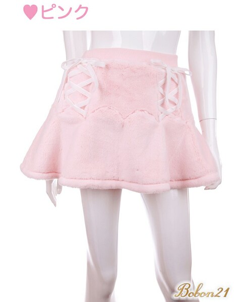 ♡Bobon21 2016AW New Collection♡ フリース素材のふんわりキュートなレースアップスカートが新登場 レースアップの下はスウィートな花びらカットで切り返しデザインとなっていて、スカートの下は表地と同じ素材でショーパンになっているから、冬でも暖かくてポップに動けるよ♪ 同じ素材で作った、セットアップで着られるスウェットトップスも用意してるよ♪ カラーは、白とピンクの2色展開
