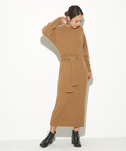ベルトの通し方にこだわったデザインワンピは、ウエストのベルトを一回結んでたらしてきるのがオススメです。レギンスやデニムと合わせても可愛いです。