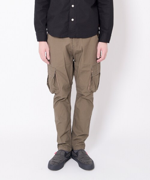 今回はストレッチ入りのリップストップを採用。股上を深く取りながらも膝下からすっきりとしたシルエットに設定されています。ストレッチ:あり