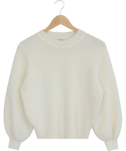 フェミニンなムードのアンゴラニットトップス。 ふわふわアンゴラ混の柔らかいニット素材で肌触り抜群◎ 程よくゆるいシルエットのニットは着心地◎ 肌触りが良いアンゴラ混素材はチクチクしないので、ニットが苦手な方にも◎