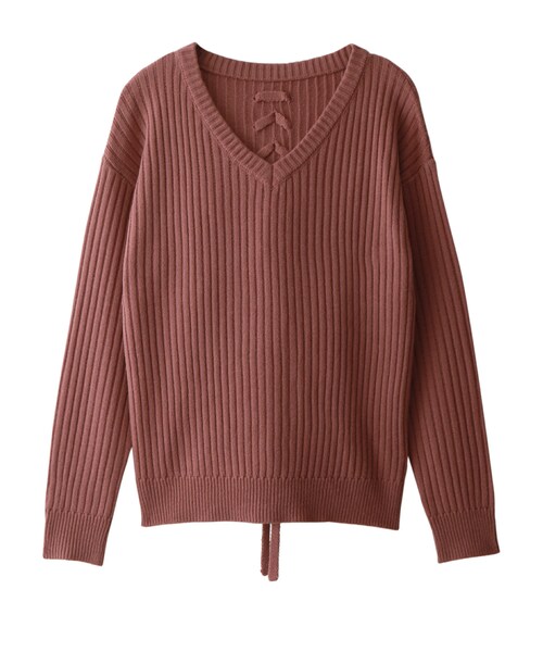 バックスタイルにあしらったレースアップデザインが魅力のニットトップス♪ Vネックデザインが顔まわりをスッキリとした印象に♂ 幅広いテイストとマッチする嬉しいアイテム◎。 ★伸縮性があります。 ★素材の特性上、カラー・形・サイズが、写真・サイズ表示と多少異なる場合があります。