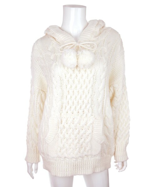 ♡Bobon21 2016-2017 AW New Collection♡ フード&ボンボンが冬ぽくてキュートなケーブルニットが新登場 ゆったりオーバーサイズ、萌え袖、フロントポケット、女の子の好きが詰まった1着❤長めの作りなので、ワンピースとして着られるよ♪