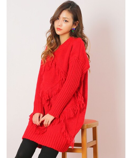 オトナの雰囲気を楽しめる秋冬のタッセルポイントニットです。 ワンピースとしてもロングトップスとしても着こなせる一品。 他にはないデザインが1枚着るだけで手抜き感のないスタイルをメイクします。 ローゲージでロングシーズン着用していただけます。 ゆったりとしたシルエットとクルーネックデザインでトレンド感もプラス!