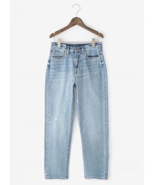 トレンド要素を凝縮したハイライズデニムパンツ 腰やももまわりにゆとりのある、トレンドのハイライズデニムパンツが登場です。丁寧にブリーチをかけて色落ちさせ、フロントにはさりげなくダメージ加工を施しました。バックポケットはリベットを外してトップを僅かにカットし、色落ちしきれていない濃色部分を覗かせたデザインに。ボリュームニットをインして、今年らしいスタイルが楽しめます。 ※こちらの商品は、前後ポケット、フロントの一部、裾に、ダメージ加工を施しています。