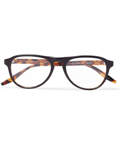 All of Barton Perreira 's glasses are made by hand in Japan, and this D-frame design is a sterling choice. While the front face is realised in sleek matte-black, the back and arms are finished in classic tortoiseshell. This intricate detailing creates a considered modern look. This item's measurements are: Frame Height: 5cm Frame Width: 13cm Matte-black acetate Tortoiseshell arms, non-prescription transparent lenses Come with a hard case and cleaning cloth Can be fitted with prescription or UV-protective lenses Made in Japan