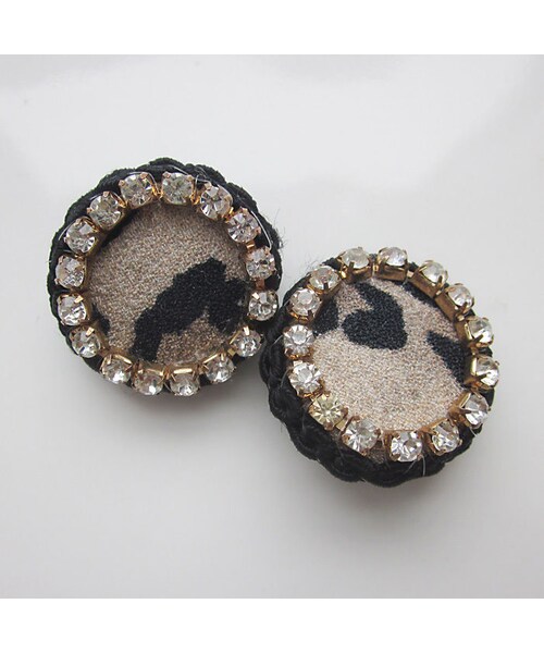 フランス製生地を使用したくるみボタンイヤリング。 新しく豹柄も追加いたしました。 幾何柄でモノトーンの色合いや豹柄は 大きめのイヤリング(直径3cm)で存在感があるのに とっても合わせやすいです。 気がつくとこればかりつけてしまっている位です。 ラインストーンを樹脂で定着して固定していましたが、輝きを維持させたいので、 一目一目細かく縫い付ける仕様に変更。 裏も縫い付けていますので、より頑丈な作りになりました。 <使用素材> フランス製生地・ガラスラインストーン・ブレードりぼん・イヤリング金具