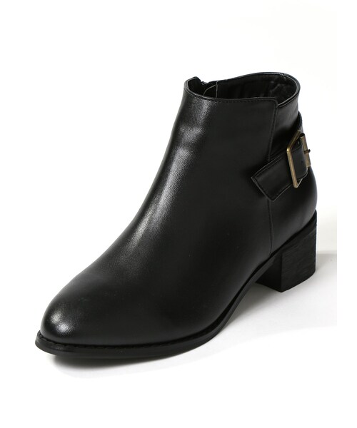 シンプルなデザインにベルトディテールがアクセントのバックルブーツ。 ほどよい高さで美脚効果を発揮しつつ、安定感のあるワイド幅のソールが嬉しいポイント◎ カジュアルにもきれいめにもハマる万能アイテムは重宝できること間違いなし! ★履き口内周のサイズは、縫製の関係で、多少異なる場合があります。