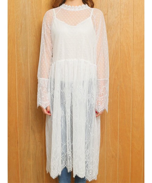Tシャツの上から重ねてもいいし、Tシャツの中にレイヤードしてもかわいい♪ 柔らかいレース素材を使用したミディ丈のワンピースです。 ボトムはダメージデニムで程よく甘さを抑えるのが◎ デニムシャツを羽織って、デニムパンツとサンドイッチしたコーデもきっとかわいい♪ レザーやブルゾンと合わせて大人フェミニンカジュアルに着こなしたい1枚。