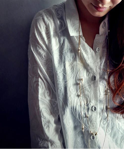 目を奪われる素材感。『ダダの白シャツではないところにぐっと惹かれます』シンプルデザインの刺繍シャツの登場です!やっぱり使える白シャツ、でもありきたりなものは着たくない。そんな思いから作られたのがこの刺繍シャツです。シンプルで使いやすいのに、抜群のオシャレ度。着心地もよく、インに主役に年中大活躍の予感!!1枚でダメージデニム、ヒールで着て大人カッコよく。ロングカーデやブロスカーデを羽織ったバージョンも◎ボトムにワイドパンツや、変形スカート、カフェパンツでモードなコーデするのはお洒落上級者間違いなし!どんな方でもお似合いできっとお気に入りになること間違いなしです。※全ての柄のつなぎ目は合っておりません。生地の裁断にて、柄の出方が1点1点異なります。柄のご指定は出来かねます。ご了承の上お買い求め下さいませ。※ボタンホールを開けてすぐの為、繊維が出ている事が御座います。ロック始末を致しておりますので切って頂いてもほつれる心配は御座いません。