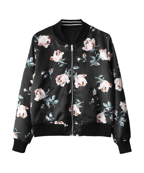 大胆なフラワープリントが周囲の目を惹くこと間違いなしのブルゾン。 コーディネートの幅を広げる、無地とのリバーシブル仕様も魅力的☆ 大人のスタイルへと導く、サテン生地も注目したいところ◎。 ★花柄部分は、裁断の関係で、柄の出方が写真と多少異なる場合があります。