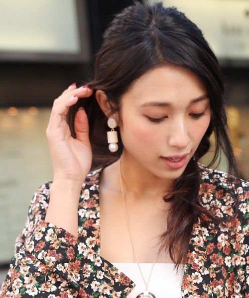 スタイリングのポイントになること間違いなしのモチーフイヤリング。 ウッドと組み合わせたパーツがかわいく、カジュアルダウンしてくれるアイテムです。