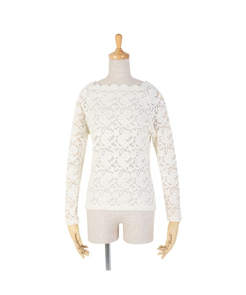 季節の変わり目に使いやすいフェミニンな総レーストップス。 フラワーレースの透け感が可愛らしくトレンド感のあるポイントです。 スカラップの衿ぐりでガーリーなエッセンスもプラス♪ 伸縮性のある生地なので、ボディに程よくフィットしトップスとしてはもちろん、インナーとしても大活躍の一品です♡ MATERIAL: モデル身長: 150cm 綿55%ナイロン30%レーヨン10%ポリウレタン5% made in China サイズ着丈 胸囲袖丈 Free 55.5cm79cm58cm 【ご注文確定前に必ずご確認ください】 いつもF i.n.tをご愛顧頂きありがとうございます。 STORESの在庫掲載については、F i.n.t代官山店と在庫を共有しているため、在庫更新のタイミングにより在庫切れの場合やお届けまでお時間を頂戴してしまう可能性がございます。 商品を他店舗よりお取り寄せの場合には、通常よりお届けまでにお時間がかかる場合がございますので、恐れ入りますが予めご了承ください。