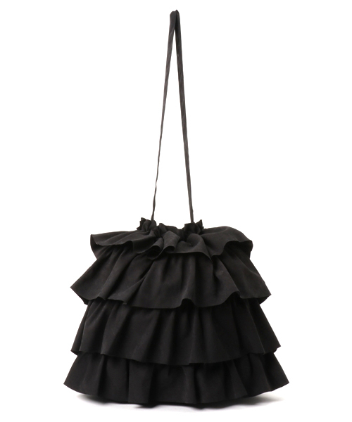 ティアードフリルがガーリーで可愛いショルダーバッグ。 フリルのボリューム感と全体のバランスが良く、甘すぎないのでどんなコーディネートにも馴染みます。内側ドローストリングできゅっと絞っても、そのままでも雰囲気を変えられます!