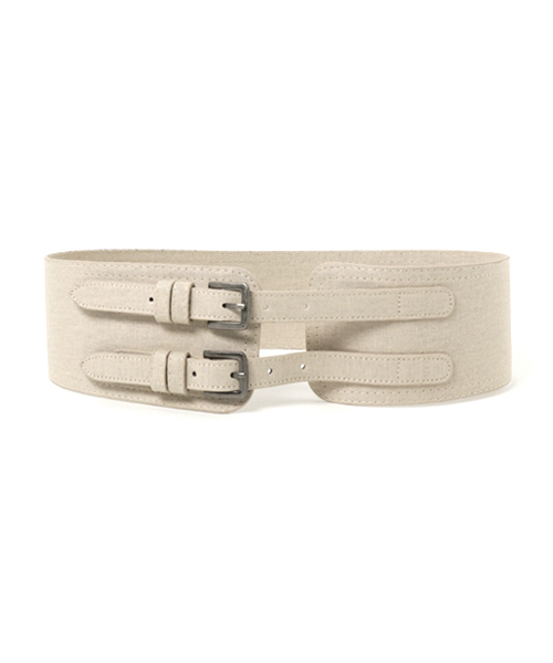 リネン混で仕上げたワイドベルト。フロントのダブルベルトが手軽に着こなしのアクセントになります。幅広いスタイリングに合わせられ、腰廻りのポイントには欠かせないひと品。ハイウエストのボトムスと合わせるのはもちろん、オーバーサイズのトップスやアウターの上に合わせるなど、マルチな着こなしにお使い頂けます。お値段も手頃ですので、ご自身用は勿論、プレゼントにもオススメです