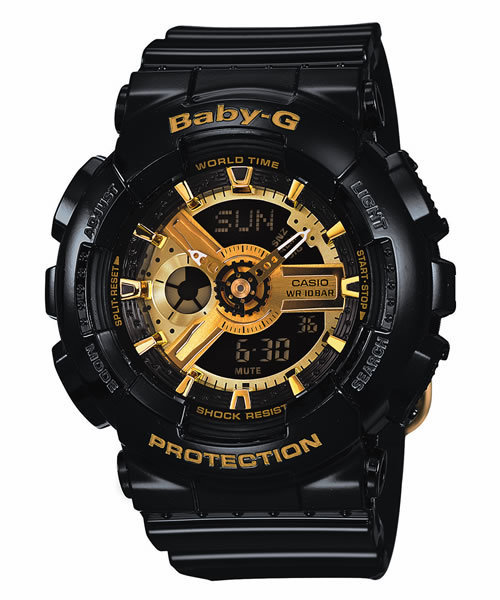 G-SHOCKのビッグケースシリーズの人気モデル、GA-110を女性の腕に最適なサイジングに。 歯車をイメージしたパーツや立体的な文字板が、より複雑かつメカニカルな印象を与えています。 立体的に配したインデックスにはキラキラと輝くメタル塗装を施し、時計の質感を向上。シャープでエネルギッシュな印象に仕上げました。 押しやすさにこだわったサイドボタンが実用性を向上。 機械的で複雑な文字板が手元にキラリと個性を与え、ストリートファッションシーンに映えるBaby-Gです。 ●耐衝撃構造(ショックレジスト) ● 無機ガラス ● 10気圧防水 ● ワールドタイム ● ストップウオッチ ●タイマー ● 時刻アラーム5本 ●時報 ● フルオートカレンダー ● 12/24時間制表示切替 ● 操作音ON/OFF切替機能 ● LEDライト(残照機能付き) ● 精度:平均月差±30秒 ● 電池寿命:約2年