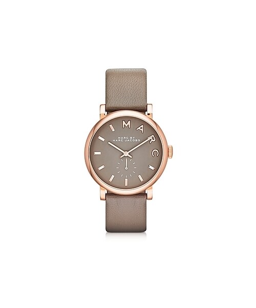 Baker 36 MM Gray Leather Strap and Rose Gold Stainless Steel Women's Watch by Marc By Marc Jacobs is effortless everyday chic time piece. Featuring round 36.5mm snapback case and genuine leather strap. Grey satin finish dial with elegant rose gold tone 'Marc' logo separate seconds dial beveled sticks and hands and a scratch resistant Sapphire Crystal face. Water Resistant to 5 ATM. Warranty 保証 2年間 ケース素材 ステンレススチール ケース大きさ 1.42"x1.42"x0.31" - 3.6 x 3.6 x 0.8 cm 文字盤 グレイ ベルトサイズ 1,6 x max. 23 cm バンド素材 本革 留め具 バックル 重量 gr 40 防水加工 5 ATM 保証 2年