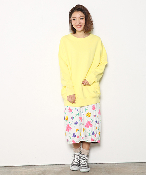 ピグメント加工で、まるでヴィンテージのようなムードを演出。たっぷりとしたオーバーサイズながらも、どこかフェミニンな仕上がりです。フローラルな柄アイテムやデニム、ミモレ丈のボリュームスカートとあわせて、フェミニンなカジュアルスタイルを楽しんで。