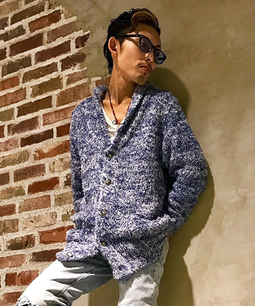 どこかリッチな雰囲気で着こなせる、ふわふわのボアカーディガン。2色の糸をミックスすることで、より表情のある見え方に仕上がりました☆適度にボリュームのあるショールカラーなら、前から見ても寂しくならずデイリーの羽織りとしてお役立ちです!