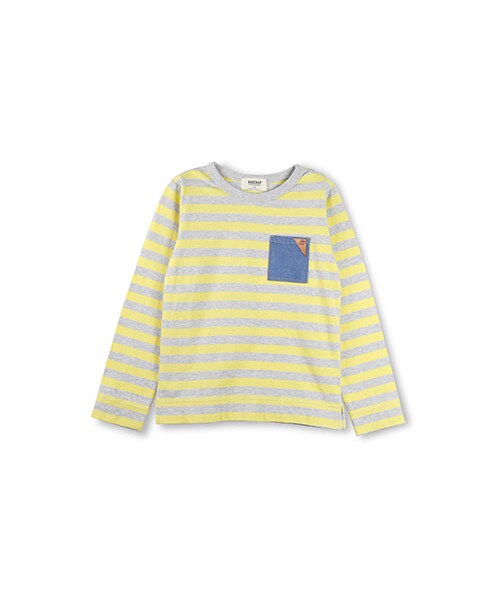 RADCHAP定番デザインのデニムポケットボーダーTシャツの新作です。1枚あるとデイリーに活躍するボーダーTシャツです。※80cmから90cmは、首もとがスナップボタン仕様となります。
