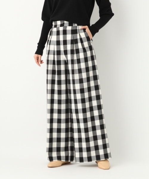 太めのギンガムチェックがポイントなワイドパンツ。 シンプルなトップスはもちろん、 デザインアイテムと個性を活かしたスタイリングにしても。 足元はパンプスでキレイにまとめるか、 ローファーシューズでメンズライクさを残した着方がオススメです。