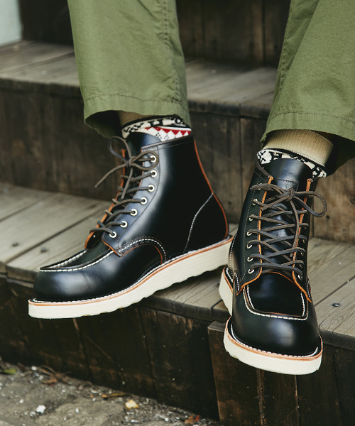 『専門ブランド顔負けの、こだわりレースアップブーツ』 時代性に左右されることのない、普遍的な魅力をもったオーセンティックなモックトゥのワークブーツです。オイルドレザーまたはスエードレザーのアッパーに対し、レザーのシューレースと白のステッチがアクセントになっています。 アウトソールには、良好な歩行性&高いグリップ力をもたらすトラッドクッションソールを採用。さらに、インソールとの間にコルクをたっぷりと敷き詰めることで、いっそうのクッション性を確保すると同時に、これが足型に合わせて沈み込むため、自分だけのフィットとなるのも特徴です。 『本格ワークブーツにも用いられるグッドイヤー製法』 底付けは、水が入り込みにくいうえ、繰り返しソールの張り替えができるため、末長く愛用することができるグッドイヤーウェルテッド製法にこだわりました。ブーツ専門ブランドにも引けを取らない本格的な一足は、履き込むほどに足に馴染み、味わい深く育つエイジングも楽しみのひとつ。ケアをしながら10年、20年と愛せる逸品です。 『キレイめスラックスや骨太パンツとの合わせが今どき』 デニム、チノ、ミリタリーパンツなど、あらゆる定番ボトムスにマッチする高い汎用性は言わずもがな。あえて品の良いスラックスと合わせて、大人っぽい装いのハズシに活用するのも大いにアリ。シルエットはベーシックなストレートはもちろん、今年らしさを狙うなら、男らしい骨太な一本がオススメ。一方、スリムフィットとのコンビも新鮮です。またブーツの存在が映える、クロップトパンツやロールアップを取り入れるのも有効手段。