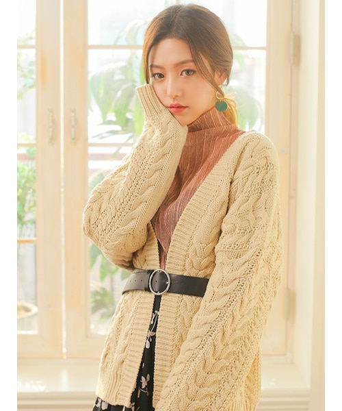 ゆったりとしたシルエットが大人可愛いニットカーディガンです。 全体に立体的なケーブル模様がデザインされており、 スタイリングのポイントになってくれます。 また、太い毛糸でざっくりと編まれたニットは、 立体感が生まれ保温性も抜群なので、 これからの季節に活躍すること間違いなしです。 フロント部分はオープンスタイルなので、 圧迫感なくリラックスして着用していただけます。