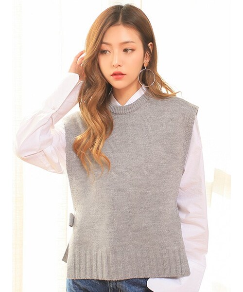 トップスの上に重ねて着るだけで お洒落上級者の着こなしが叶う起毛ノースリーブニットベストです。 サイドのリボンはさりげなく大人可愛い印象を与えてくれます。 また、ストンと落ちる綺麗なラインが魅力ポイント! インナーと合わせやすいベーシックなカラーを揃えました。
