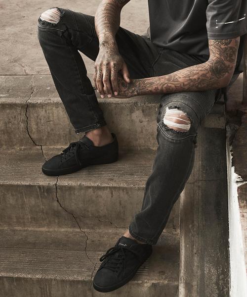 ■monkey time 別注アイテム■ 今回のコレクションコンセプト“Under the Crown” は、1970 年代にイギリスの労働者たちが巻き起こしたパンクロックムーブメントからインスピレーションを得ています。 「The clash」に代表されるような当時のパンクロックブームは、経済的・社会的な不安や不満を抱えた労働者階級の若者達による、貴族階級や君主制( その象徴としての「王冠」) への抗議、反抗の表れでした。 イギリスでは戦後、人口が増加するに従い多くの労働者たちが狭い土地へと押し込められ、祖末な暮らしを余儀なくされました。人々の間では紛争やいがみ合いが日常化し、このような社会の変化はやがて、規範や体制に対する反抗心や怒りを服装や態度で表すことへと繋がりました。 この反体制的な盛り上がりがパンクムーブメントを生み出しました。 パンクスタイルは現代へと引き継がれ、今日でも毎シーズン、ランウェイを彩っています。 ダメージ加工やボンテージストラップ、ブリーチ加工などは全て、1970 年代のイギリスとパンクロックミュージックの” 体制( 王冠) に従属しない” という精神から生まれました。 <STAMPD> 2009年にクリス・スタンプによって始められたブランド<STAMPD>はアメリカ、ロサンゼルスをベースにクオリティーを重視されたラグジュアリーアパレルやアクセサリーを 展開している。 世界でも限られたハイエンドなお店でしか展開されておらず、デザイナーの作品を求める人は数多くいる。 クリスのシンプルで高級感のあるクリエーションは、LAの日々をライフスタイルからインスパイアされており、現在注目されているブランド。 店舗へお問い合わせの際は、全国のBEAUTY & YOUTH 各店舗まで下記の品名/品番をお申し付け下さい。 品名:STAMPD×MT NORTON JEANS 品番:8314-499-0078 ※画像の商品はサンプルです。 実際の商品と仕様、加工、サイズ、素材が若干異なる場合がございます。