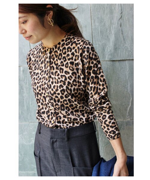 【2016AW】 IENA 25th mon plan de Paris.... 9月は“mesdemoiselles et un garcon” CINEMAに出かけましょう。 モッズ・トラッド・60Sの要素を取り入れて、スクリーンの中のように、いつもより一歩スタイルアップした提案。 エレガンスはレオパード、カジュアルはチェックをみせて、girls/boysスタイル。 重くなりすぎないように、さし色をバランスよく取り入れて。 レオパード柄のニットカーディガン。 今シーズンのトレンドに欠かせないレオパードアイテム。 シンプルなコーディネートを今年らしくアップデートしてくれます。 デニムであわせてヴィンテージライクに着こなしたり、ワントーンでまとめたコーディネートのアクセントにも◎ カーディガンのフロントボタンを閉めて、コンパクトなプルオーバーのようにしてもシックで素敵ですよ。 シリーズもございます。 素材 本体:ナイロン57%、毛27%、アクリル15%、綿1% 生産国 中国 取扱い 本体:ドライクリーニング、