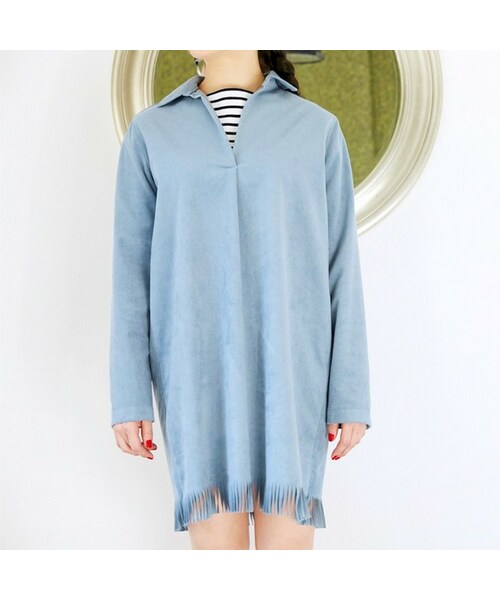 『C'est pas Grave(セパ・グラーヴ)』からスタートする、新しいシーズンのコレクション。今回のテーマは、『NATIVE AMERICAN(ネイティヴ アメリカン)』 「万物に崇拝と尊敬を示し、感謝とともに大自然の中で生きる・・・。」そんなネイティブアメリカンに宿るスピリットと文化にインスパイアされ、コレクション。装飾や柄など、遊び心をしのばせたアイテムは、どれもクリーンなフォルムを描く、大人の女性に似合う仕上がり。取り入れやすく、ラフに“ハイカジュアル”を提案しています。 リアルレザーではなかなかお目にかかかれないパステル調の淡い春らしいカラー。ワンピースでも、チュニックとしても着られる絶妙な丈感は着回しやすさをアップ!インナーにボーダーを合わせてマリンな雰囲気もオススメ。あえて、バギーのようなワイドボトムやスカートを合わせてみるバランスも今の気分。ベルトでウエストマークしてブラウジングで、シャツっぽい雰囲気も楽しめます。デザイン自体はシンプルなので、ワンピースだけじゃなく、色んな着こなし方ができるのが嬉しっ!1枚あれば、何役もこなしてくれそうなワンピースです。