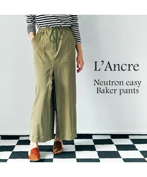 『L'Ancre(アンカー)』の大人気ボトム、ニュートロンパンツの新しいモデルが登場!今回は、春夏らしいリラックス感とワークの要素を取り入れました。紆余曲折しすぎて、1年がかりでやっと思い通りに仕上げたカタチ・シルエットはそのままに、新しいバージョンに進化。一見ロングスカートのような、でもパンツ。デザインパンツになりすぎないようなシンプルさと、身長にとらわれないワイドシルエットのパンツを模索しました。シンプルなニットやTシャツでさらっと着るだけで、十分な素敵!シーンによっては、ジャケットやブラウスでコーディネートするとかなり大人の雰囲気に。コーディネートしやすいので、定番パンツになりそうです!こだわりポイントは、サルエルパンツくらいの股上の深さ。ハイウエストでトップスインで履いたり、ビッグサイズトップスとのバランスも今の気分。そして、まっすぐなバギーラインにもこだわりました。まっすぐなバギーラインは私のような(156cm)背の低い方にもバランスよく履けるワイドパンツ。スニーカーやフラットシューズはもちろん、サンダルやソックスでの足元コーデもオススメ!