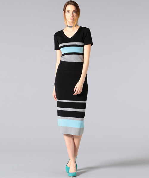 ブラックとグレーの落ち着いたモノトーンカラーに春らしいサックスを配色した雰囲気のあるリブニットタイトスカート。全体がリブ編みになっているので、ストレッチ性が高く、コンパクトでありながらも、着用感はストレスフリー。ウエスト部分もゴム入りのリブ使いで仕上げていますので、リラックスした履き心地になっています。バックにスリットが入っているので、歩きやすく、女らしさも演出できるアイテムです。