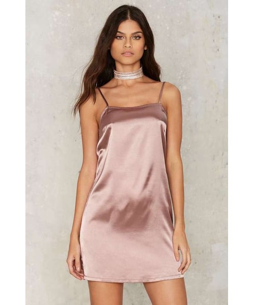 Let it slip. The Lina Dress is made in mauve satin and features a mini lengtha dn relaxed slip silhouette. By Glamorous. Adjustable straps Mini dress silhouette Content 95% Polyester 5% Elastane Hand wash Imported