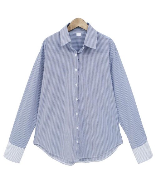 ベーシックデザインのフォーマルなストライプ柄シャツです。 ストライプシャツは、一枚持っているととても便利な定番アイテム。 余裕のあるオーバーサイズシャツで体型カバーもバッチリ◎ どんなスタイルにもすんなり馴染むお洒落アイテムです。