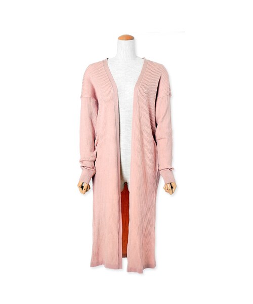 リブの表情でシワ感が目立ちにくいのも嬉しいポイント。大人な印象で着まわしやすいBLKと、ガーリーなPNK。ピンクも、ロング丈でスリットが入っているシルエットなので可愛くなりすぎずにきていただけます。 バックスタイルはVラインになっていて、今期のトレンドも加味しています。バックスタイルもすっきり見せられるのがポイント!