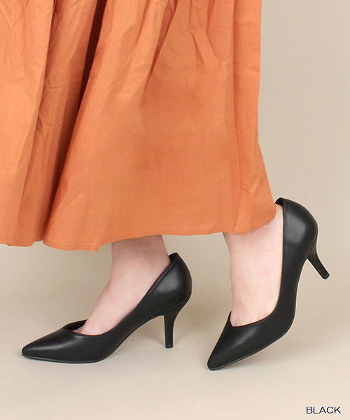 <大人気の商品に新色登場!!> 足幅ゆったり3E設計のプレーンパンプス POINT ・幅広設計でもすっきりとした印象で履けるシルエット ・履き口のVカットが足全体をキレイに見せてくれる ・お仕事から普段まで活躍 機能性 ・3E幅広設定 ・返りが良い 屈曲性が良く歩きやすい