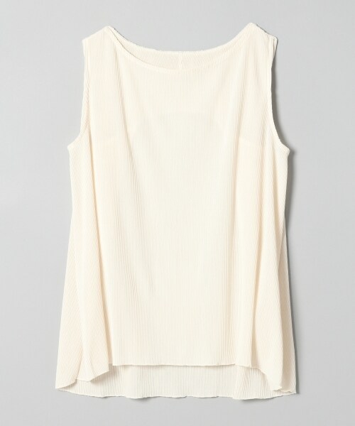 プリーツと透け感がポイントのノースリーブです☆後身頃の方にタックを入れることで動きのあるデザインに!!腕回りもスッキリ見えシンプルながらおしゃれに見える1枚☆幅広いボトムと合わせて頂ける万能トップスです♪